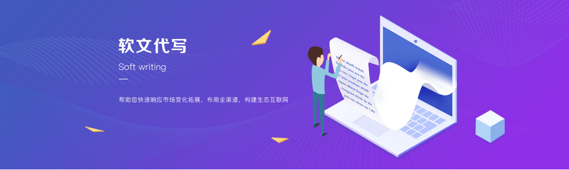 可为用户提供原创软文代写服务,用户只需提供软文代写的相关要求或者参考范文即可,1-3天出稿,不满意可免费修改3次。